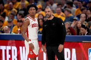 上半场,阿门独自砍下20分4板4助,但下半场他仅出手6次得7分。