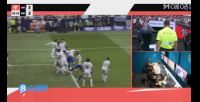 阿尔贝罗拉回应:“往后退一点,给我看接触瞬间(并提供了该时刻的画面)。接触点就在那里。好的,完美,我们取消这个进球。他明显用手触球,所以我们取消这个进球。”