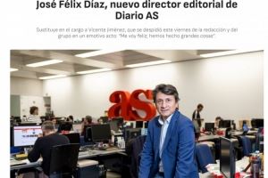 体育资讯11月1日讯 阿斯报迎来新主编何塞-费利克斯-迪亚兹,PRISA Media体育总经理阿洛伊西奥-阿劳霍任命何塞-费利克斯-迪亚兹为阿斯报的新任编辑主任。